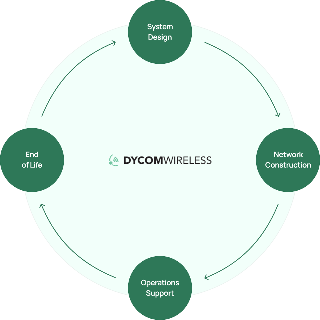 Wireless Operations Support Services are provided as part of our services continuum. They start after the system has been commissioned. They are performed using technical resources from our technology partners, our regional support partners and DyCom Group engineers.